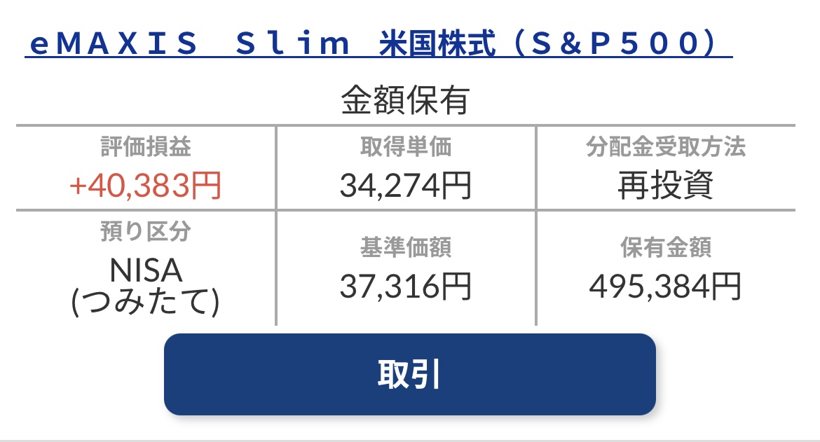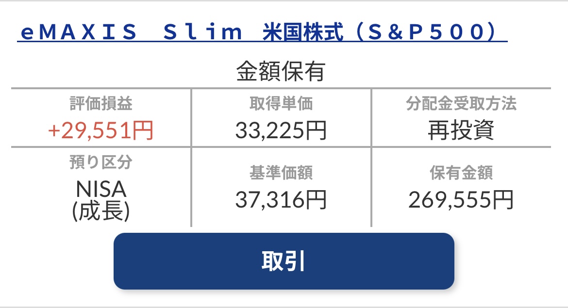 2025年10月のeMAXIS Slim S&P500 積立NISAも、つみたて枠10万円、成長枠3万円の合計13万円を積み立てることができました。